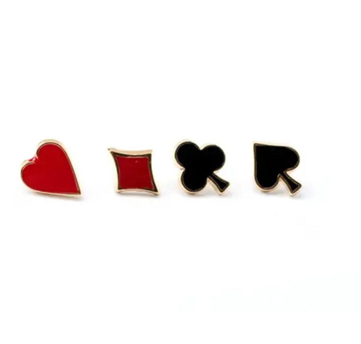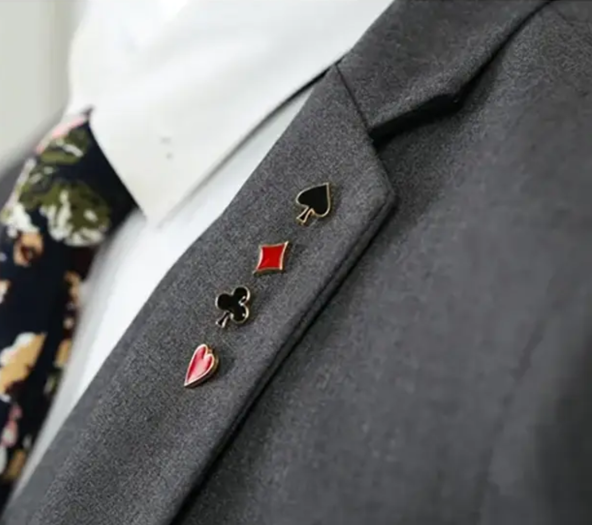 4 pins esmaltados con diseño de poker. Unisex. Tamaño promedio de cada pin 1cm de diámetro