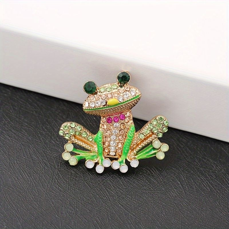 Prendedor broche con diseño de rana . Fabricado en metal y strass súper brillantes. Medidas aproximadas 4x3,5cm.