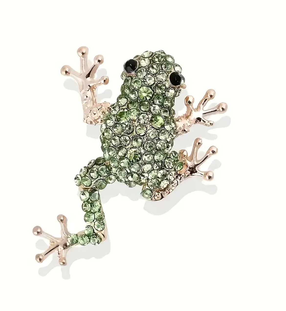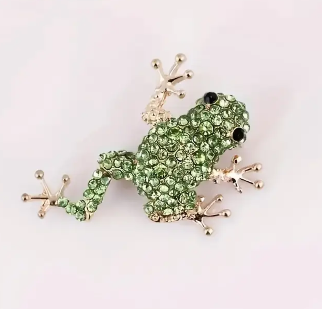 Delicado prendedor unisex con diseño de ranita en tonos verdes y dorados. Tamaño P. Medidas aproximadas 3,8x2,8cm.