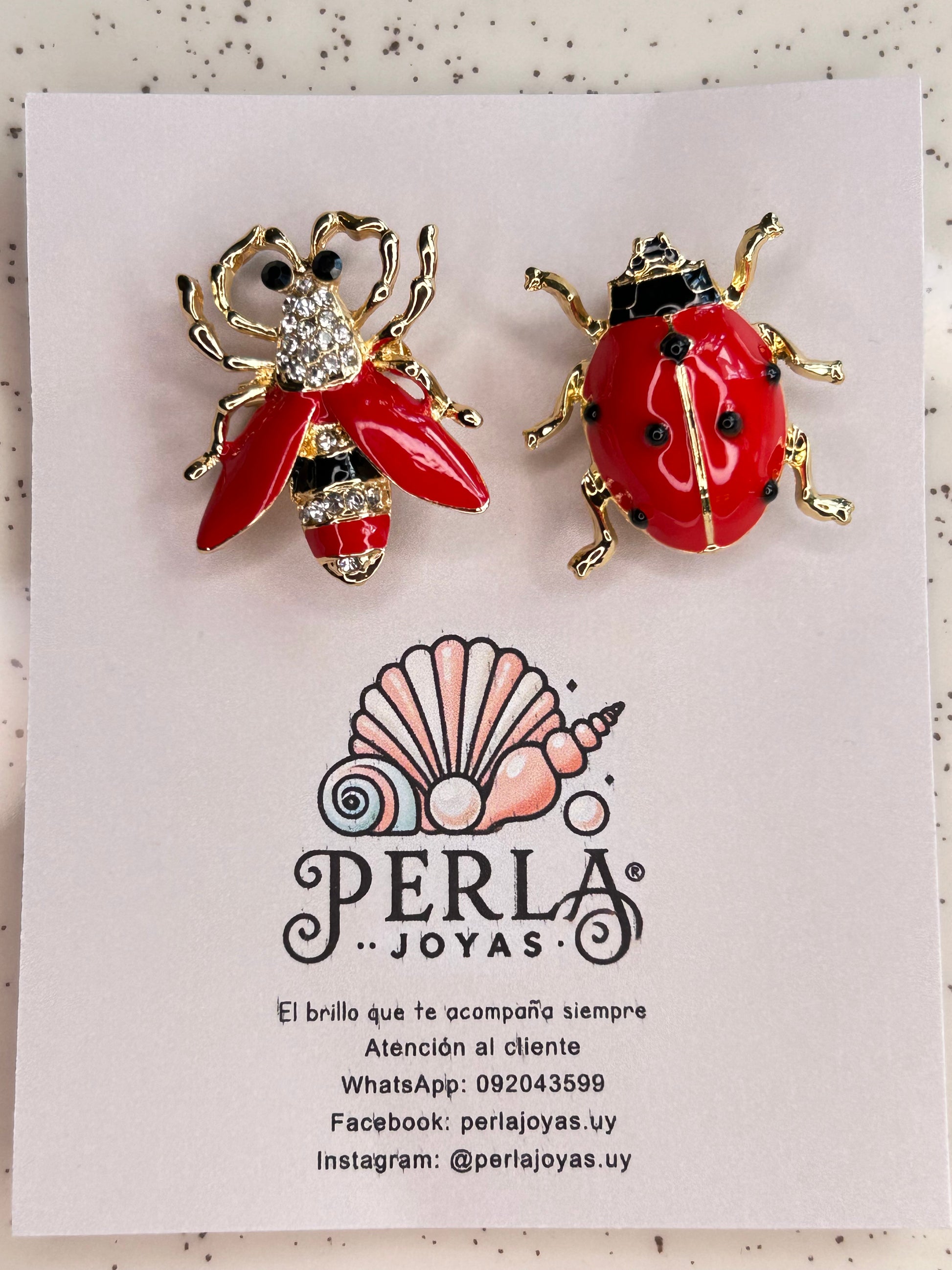 Prendedores en dúo. Diseño avispa roja y vaquita de San Antonio. Medida M. Tamaños aproximados 3,5x2,5cm.