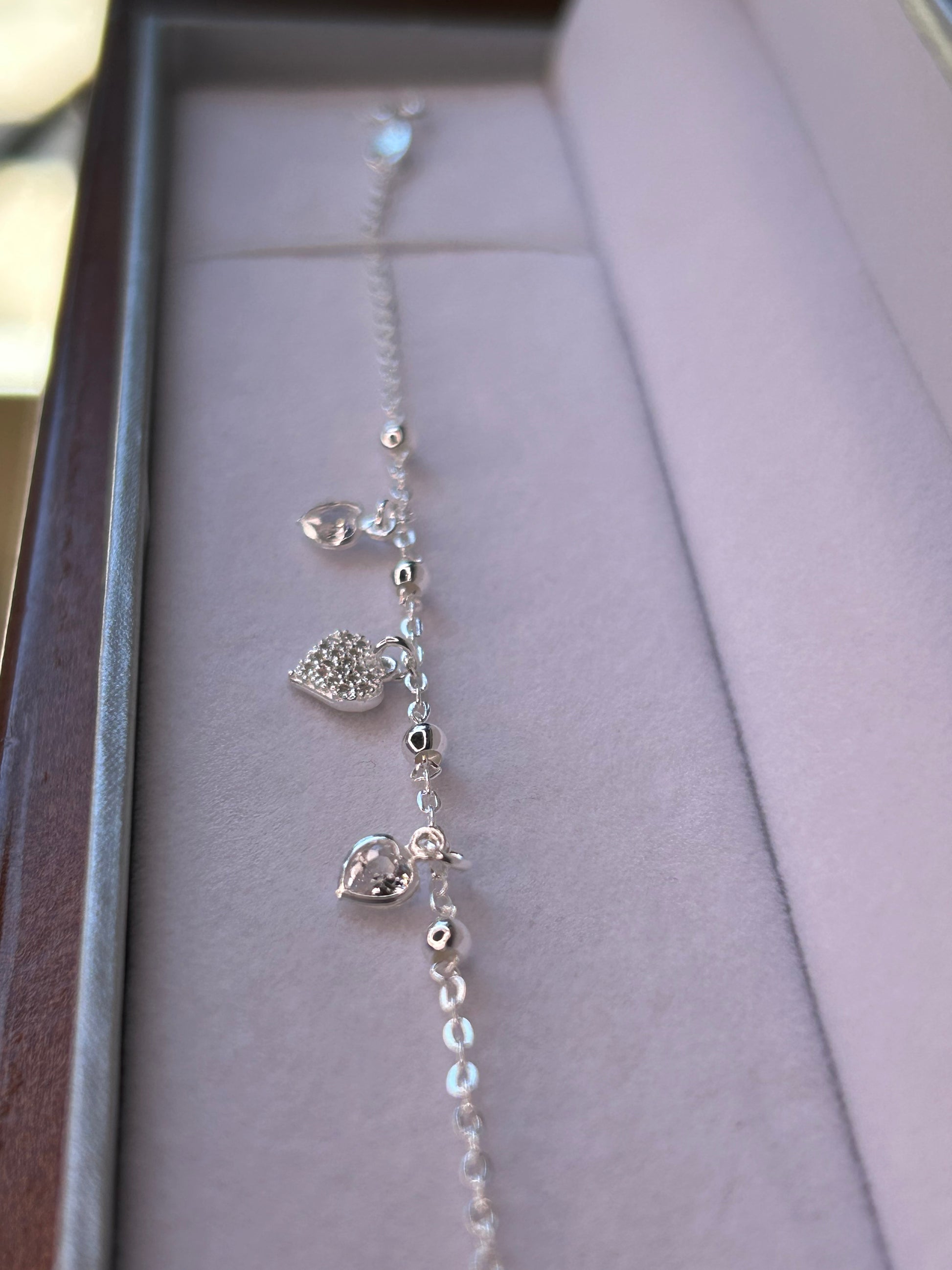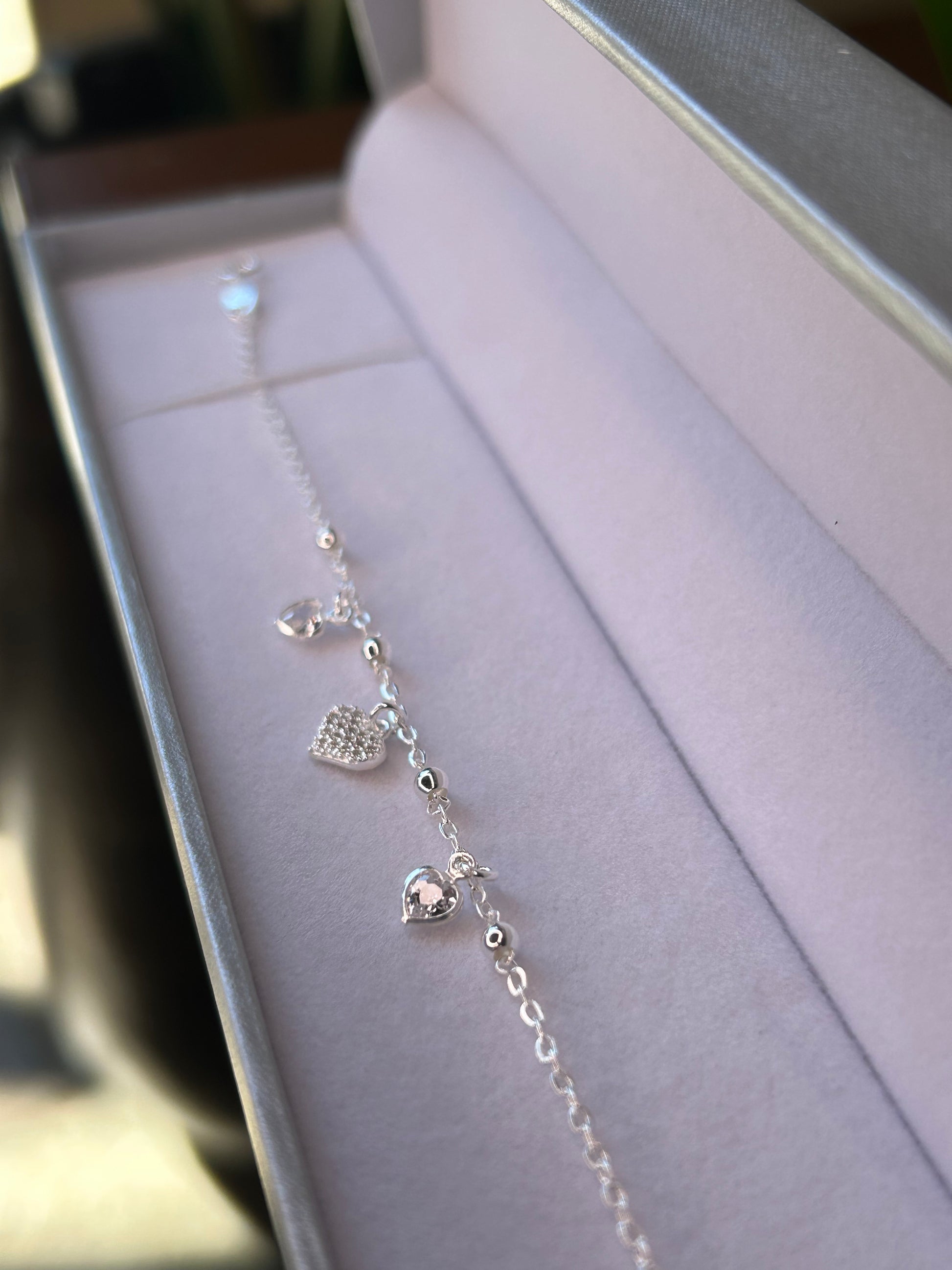 Pulsera con 3 dijes corazón. El de en medio tiene circonias. 18cm + extensor
