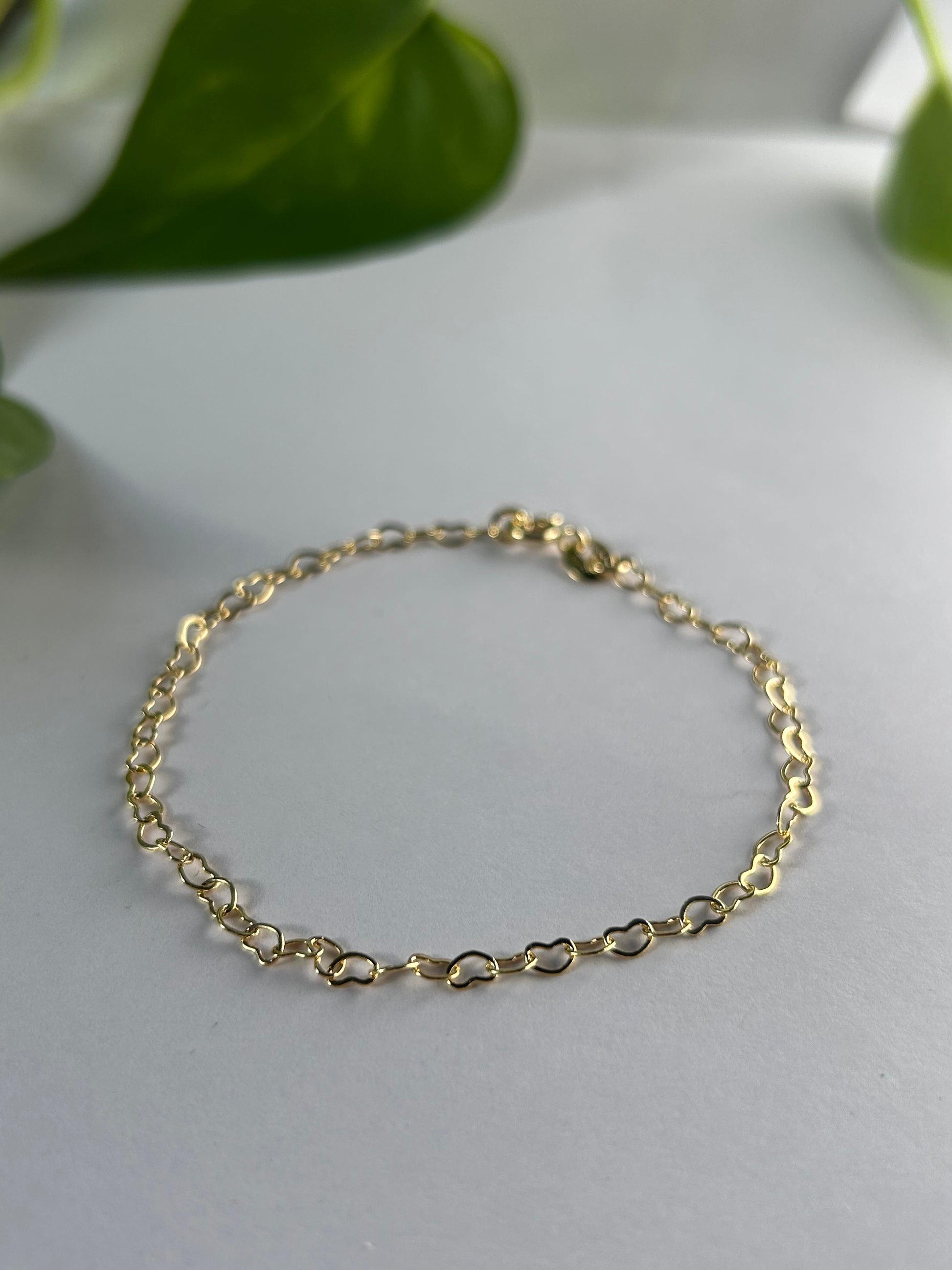 Pulsera bañada en oro 18k. Detalle de eslabones con corazones calados . 19cm