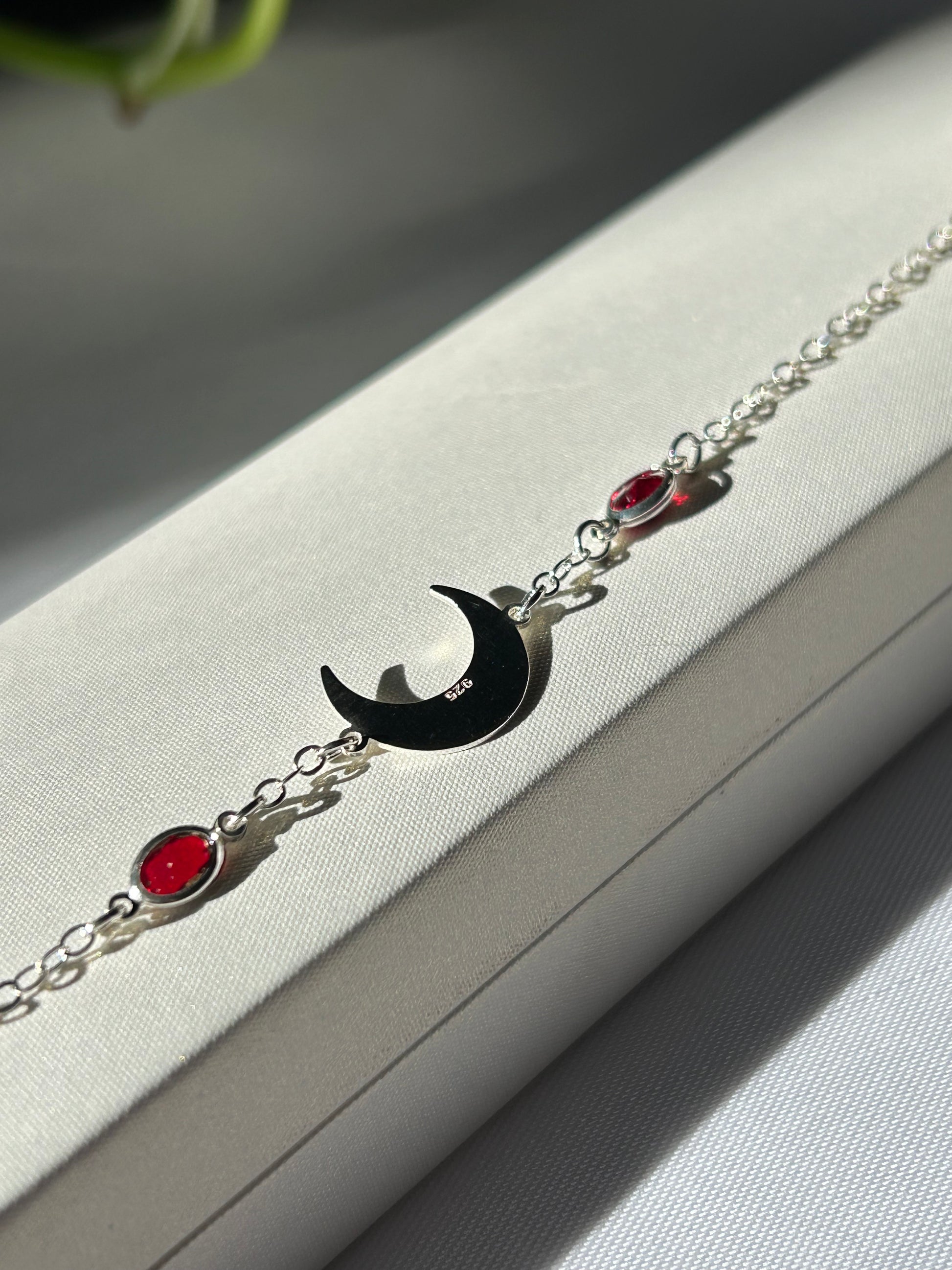 Pulsera dije luna con circonias bordó. Medida 18cm + extensor.