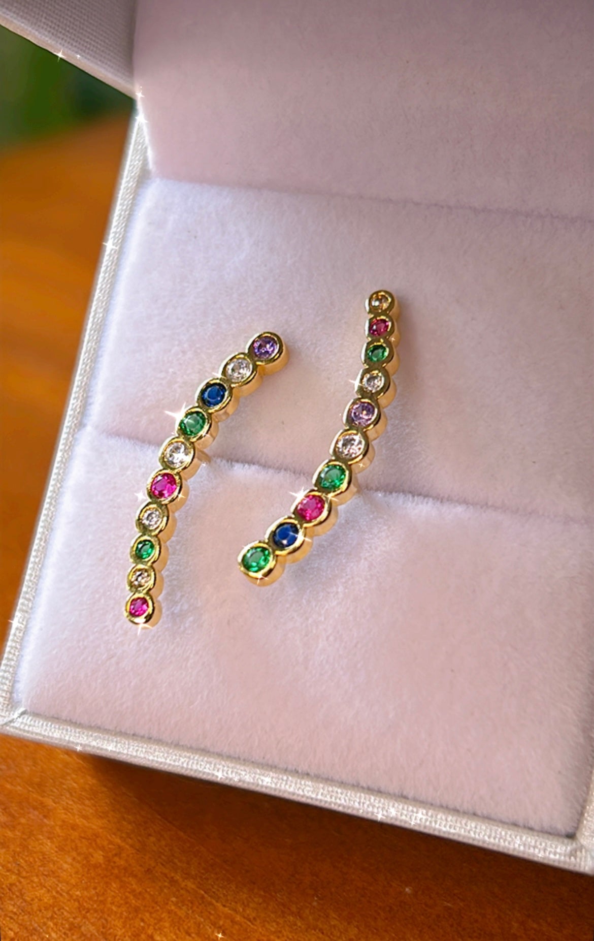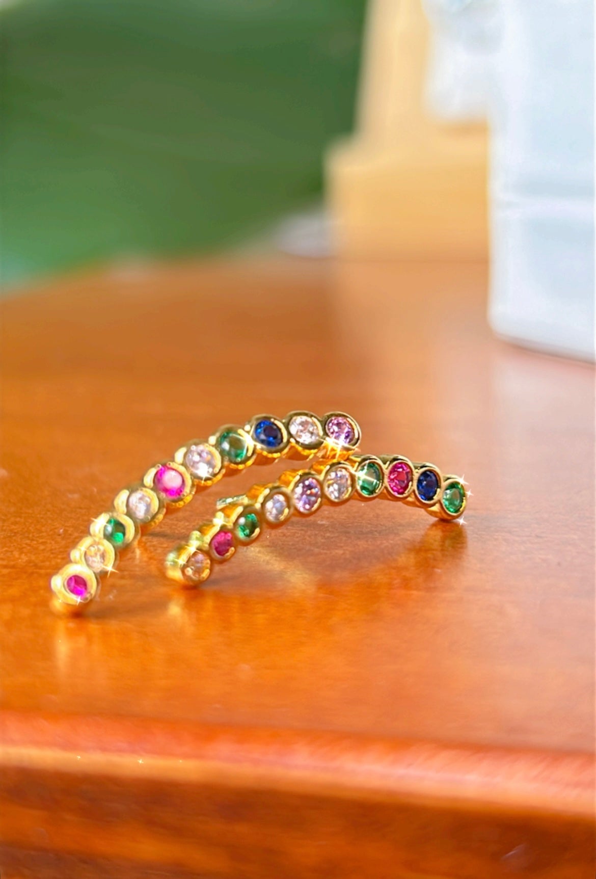 Trepadores multi circonias de colores. Aleación metálica con baño de oro 18k. Alto baño de 5 milésimos para alta durabilidad.